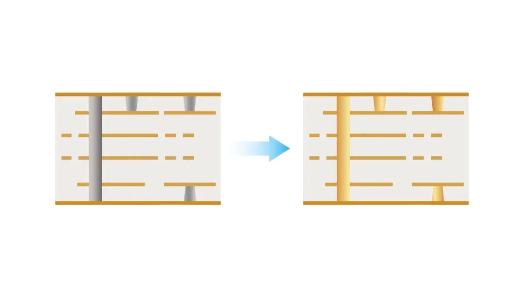 这其中,高阶HDI需求尤为明显——HDI(高密度互连)技术的引入进一步缩小了PCB布线空间和元件间距,大幅提升了服务器的集成度和性能,成为了AI服务器迅猛发展的核心助力。高阶HDI板与高多层板作为AI服务器的重要组成部分,要实现电气的互联互通,其制造过程中的孔金属化工艺尤为关键,而水平沉铜则是当前最佳的孔金属化工艺之一。其主要作用是将钻孔孔壁金属化。通过在绝缘的孔壁上用化学的方法沉积一层薄薄的化学铜层,以作为后面电镀铜的基底导电层,从而实现PCB各层间电气互联。