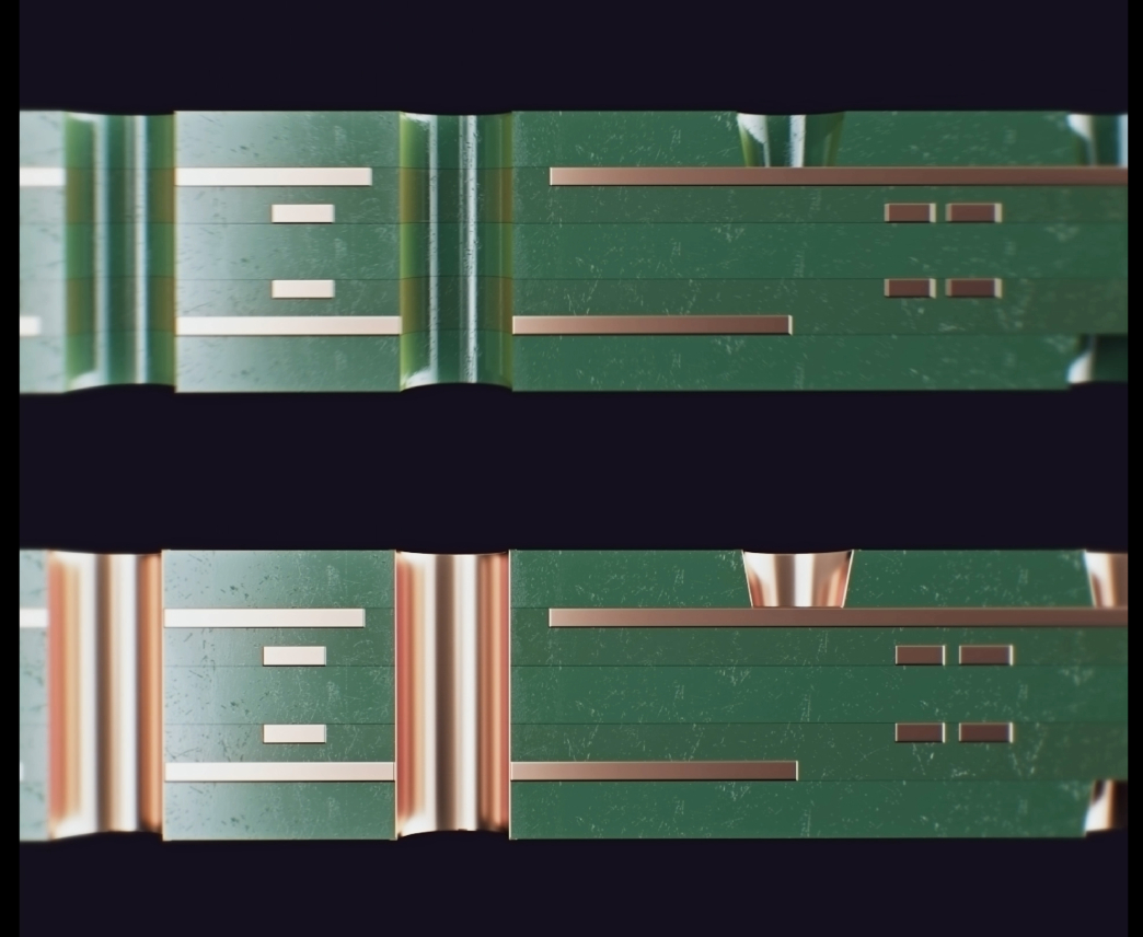 皓悦新材水平沉铜工艺 沉铜前(上)沉铜后(下)