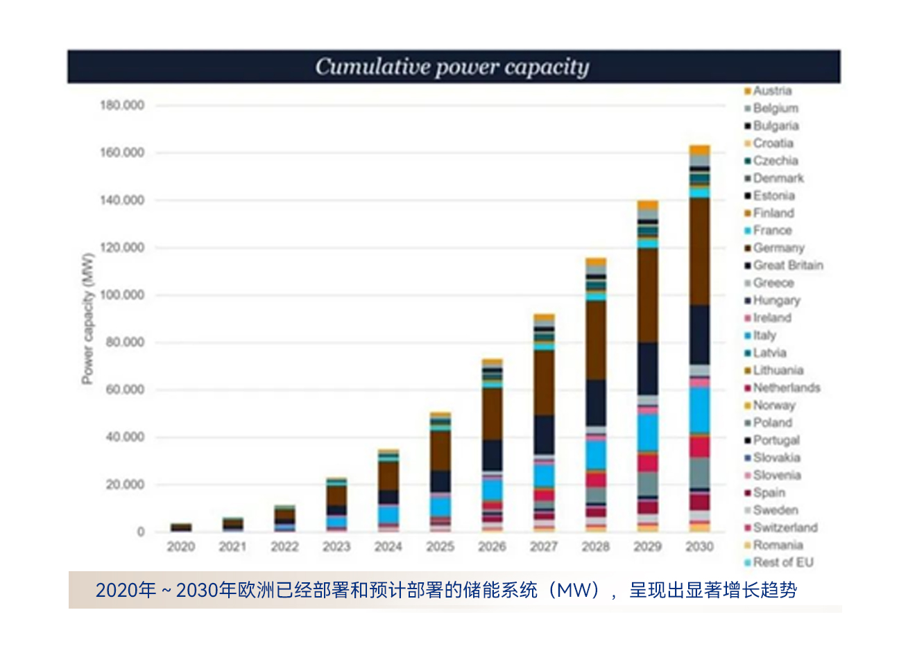 据欧洲储能联盟(EASE)与LCP Delta联合发布的《欧洲储能市场监测报告》,到2030年欧洲将累计部署163GW储能装机以平衡电网,相比目前保有量,缺口显著。