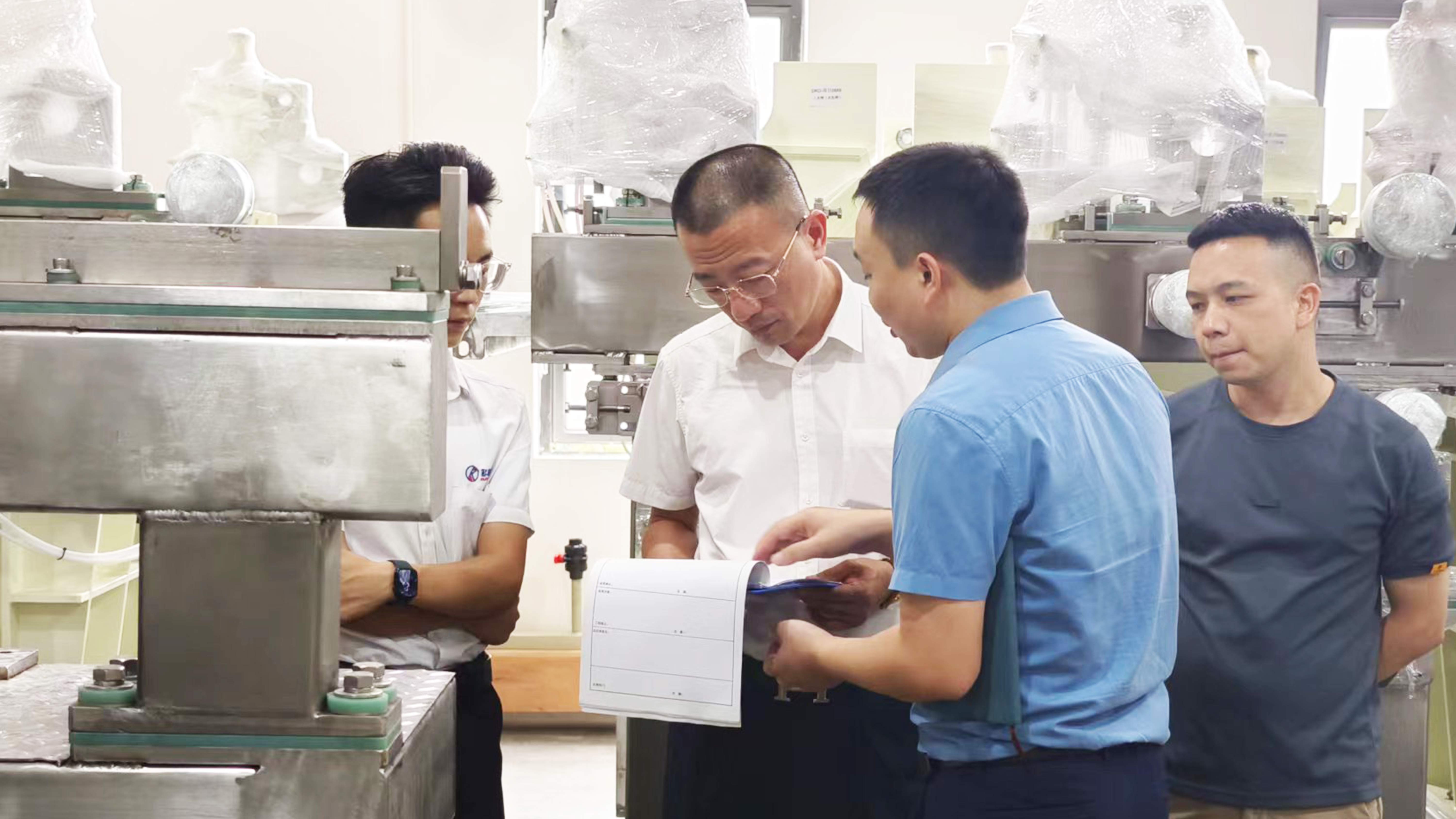 嘉元科技第一站来到k8凯发官网入口新科设备制造车间,深入了解公司装备的制造能力和精度,针对“一步式全湿法复合铜箔设备”的设计、制造等展开交流。
