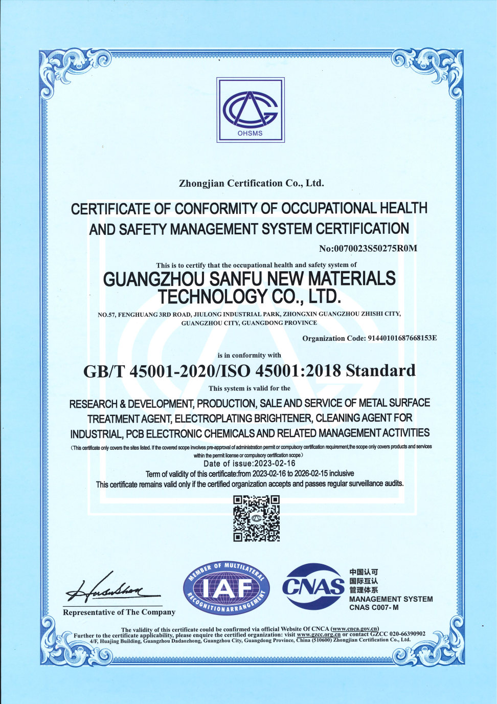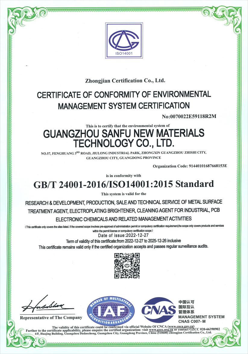 19 SF-无氰沉锌剂获得2018年广东省高新技术产品认定 广东省高新技术企业协会 2018年12月