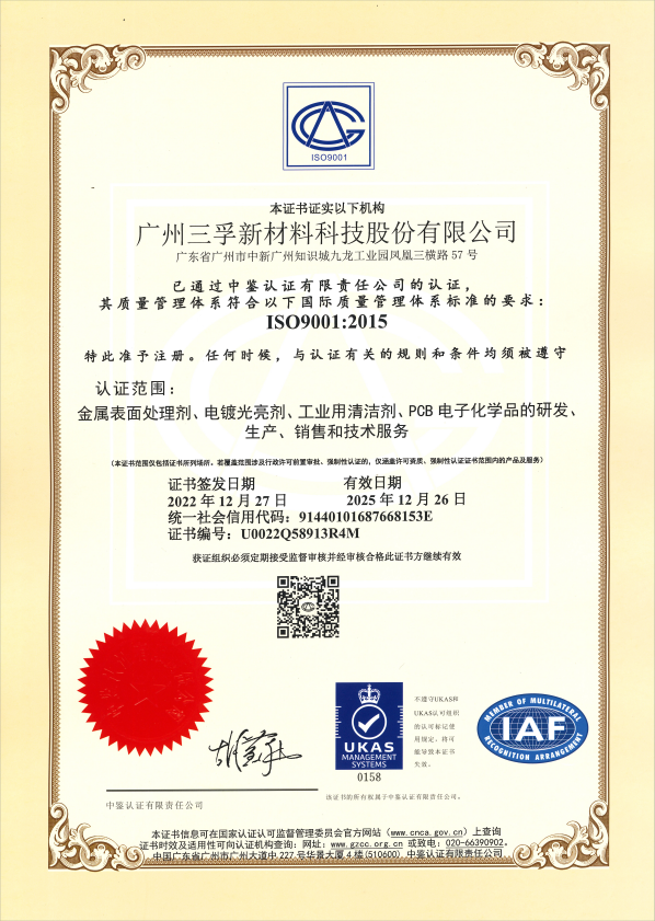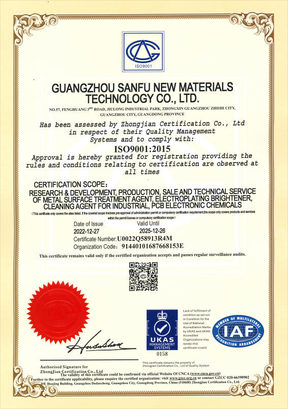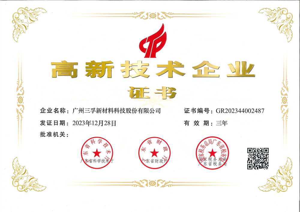 23 | SF-水溶性氯化钾镀锌添加剂获得2020年广东省高新技术产品认定 | 广东省高新技术企业协会 | 2021年4月 |